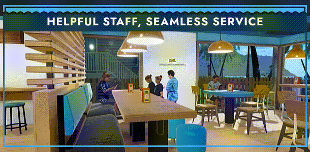 Hire NPC staff to help with orders and payments, giving you more time to grow your seafood restaurant.